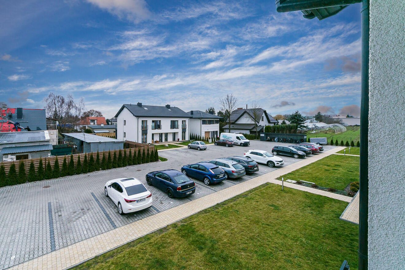 Do mieszkania przynależą 2 naziemne miejsca parkingowe w cenie łącznej 20 000 PLN (zakup obligatoryjny). Do dyspozycji jest również wiata rowerowa zawarta w cenie.